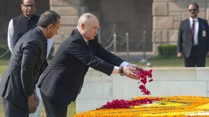 استقبالیہ تقریب کے بعد صدر پوتین راج گھاٹ گئے جہاں انہوں نے مہاتما گاندھی کی یادگار پر پھول چڑھائے اور مخصوص رجسٹر میں اپنے تاثرات درج کیے۔ اس کے بعد دونوں رہنما حیدرآباد ہاؤس پہنچے جہاں ان کی سربراہ سطح کی ملاقات جاری ہے۔
