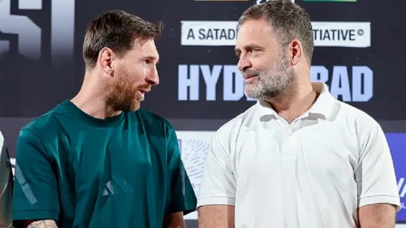 حیدر آباد میں عظیم الشان تقریب کا حصہ بننے کانگریس رکن پارلیمنٹ راہل گاندھی بھی پہنچے تھے، جن کے ساتھ میسی کی تصویریں اور ویڈیوز سوشل میڈیا پر تیزی کے ساتھ وائرل ہو رہی ہیں۔ راہل گاندھی نے میسی کے ساتھ ساتھ ان کے خاص دوستوں لوئس سواریز اور راڈریگو ڈی پال کے ساتھ بھی گفتگو کی۔ میسی نے مسکراتے ہوئے راہل گاندھی کے ساتھ کچھ دیر بات کی اور پھر اسٹیڈیم میں کچھ لوگوں کی موجودگی میں ہی انھوں نے راہل گاندھی کو ایک خاص تحفہ بھی پیش کیا۔ یہ تحفہ تھا 10 نمبر کی مشہور ارجنٹائنا فٹبال ٹیم والی جرسی، جو میسی پہنتے رہے ہیں۔ حیدر آباد میں تقریباً ڈیڑھ گھنٹے کی تقریب بغیر کسی رخنہ چلی اور ایک طرح سے پورے حیدر آباد پر میسی کا خمار چھایا نظر آیا۔