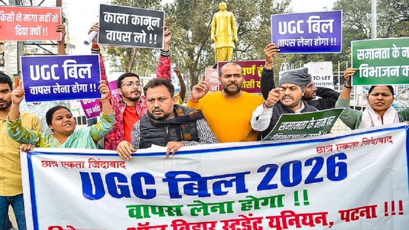 سحرنیوز/ہندوستان: ہندوستان میں یونیورسٹی گرانٹس کمیشن یو جی سی کی جانب سے حال ہی میں اعلی تعلیمی اداروں میں مساوات کے فروغ سے متعلق ضوابط دوہزار چھبیس کے خلاف ریاست بہار اور اترپردیش سمیت بہت سی ریاستوں میں نئے یو جی سی بل کے خلاف طلبہ کا احتجاج جاری ہے ۔