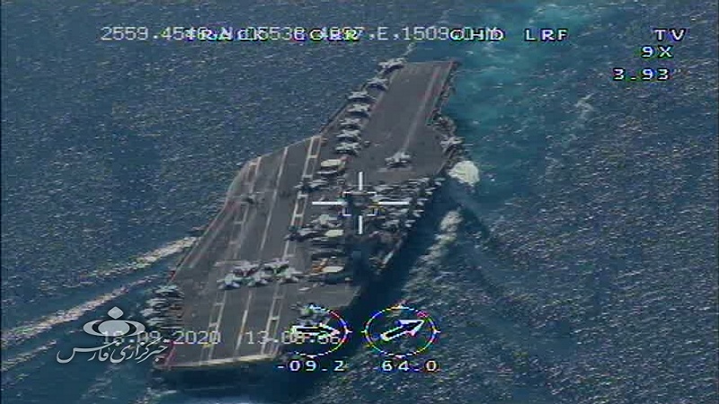 تسنیم نیوز کے مطابق نگرانی کا مامور سپاہ پاسداران انقلاب اسلامی کے ڈرون طیاروں نے خلیج فارس میں امریکی جنگی بیڑے کے داخل ہوتے ہی تصاویر لے لیں۔