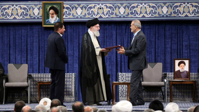 رہبر انقلاب اسلامی آیت اللہ العظمی خامنہ ای نے آج اتوار کو نو منتخب صدر ڈاکٹر مسعود پزشکیان کی صدارت کی باضابطہ طور پر توثیق کردی۔