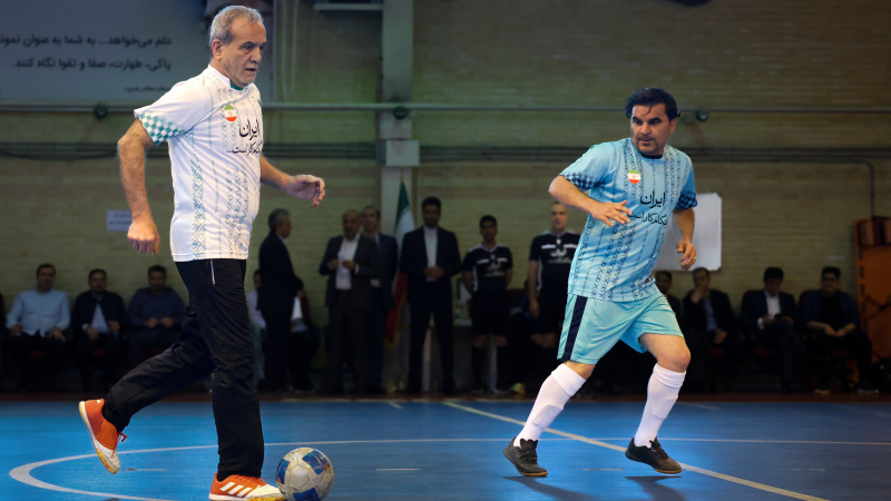 صدر ایران مسعود پزشکیان نے لیبر ویک کے موقع پر، ملک کے محنت کشوں کے اعزاز میں منعقد ایک فٹ بال میچ میں، پہلے ہاف میں محنت کشوں کی طرف سے کھیلا جبکہ دوسرے ہاف میں انہوں نے لیجینڈ کھلاڑیوں کے ساتھ اپنے جوہر کا مظاہرہ کیا۔
