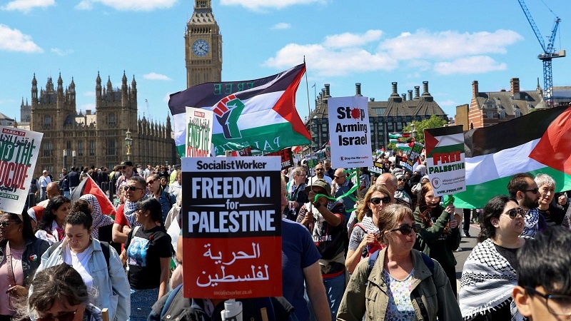 لندن میں بھی لاکھوں برطانوی شہریوں فلسطینی حامیوں نے برطانوی وزیر اعظم کے دفتر کی جانب مارچ کرتے ہوئے غزہ میں نسل کشی اور اس پر بین الاقوامی حکومتوں کی خاموشی پر اپنے غصے اور نفرت کا اظہار کیا۔ مظاہرین نے "قبضہ ختم کرو، نسل پرستی ختم کرو" اور "جنگ بندی کافی نہیں، ہمیں انصاف چاہیے" جیسے نعرے لگاتے ہوئے فلسطینی عوام کے ساتھ اپنی حمایت اور صیہونی حکومت اور اس کے مغربی حامیوں کی پالیسیوں سے اپنی مخالفت کا اعلان کیا۔