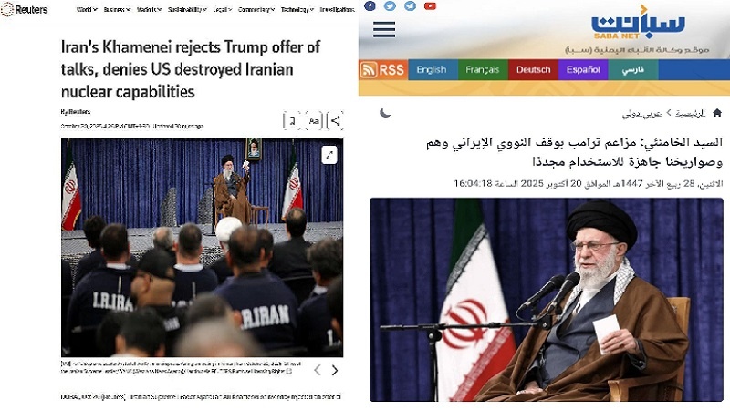 ” ساتھ ہی اس نیوز ایجنسی نے رہبر انقلاب کے اس بیان کی طرف بھی اشارہ کیا ہے جس میں آیت اللہ خامنہ ای نے امریکی صدر کی حالیہ دھونس دھمکی اور ہرزہ سرائی کی طرف اشارہ کرتے ہوئے فرمایا تھا کہ "اس شخص (ٹرمپ) نے خطے، ایران اور ایرانی قوم کے بارے میں بے شمار جھوٹ بول کر اور اپنے مکروہ رویے سے صیہونیوں کو خوش کرنے اور خود کو قابل ظاہر کرنے کی کوشش کی لیکن اگر اس شخص میں واقعی قابلیت و صلاحیت ہے تو وہ جائے اور امریکہ کی مختلف ریاستوں میں اپنے خلاف نعرے لگانے والے دسیوں لاکھ افراد کو خاموش کردے۔"