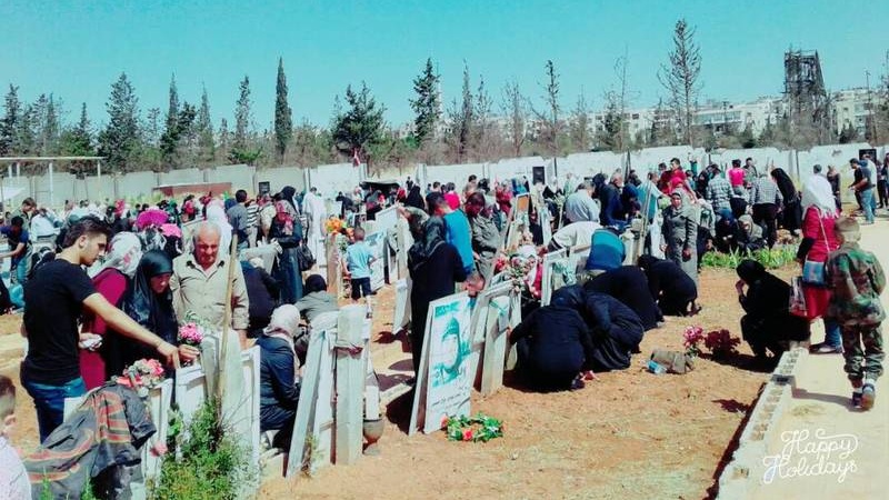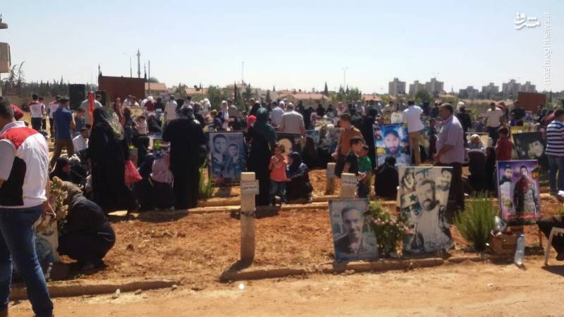 حلب کے شمال مغربی علاقہ میں واقع نبل اور الزہرا نامی دو قصبوں کے باشندے عید کی چھٹیوں میں تکفیری دہشتگردوں کے خلاف جاری جنگ کے دوران شہید ہونے والے اپنے 400 عزیزوں کے مزار پر حاضر ہوئے اور فاتحہ خوانی کی۔ شک نہیں کہ اگر یہ شہدا اسلام اور ملک کے دفاع میں اپنا خون نہ دیتے تو آج شامی عوام عید نہیں منا سکتے تھے۔