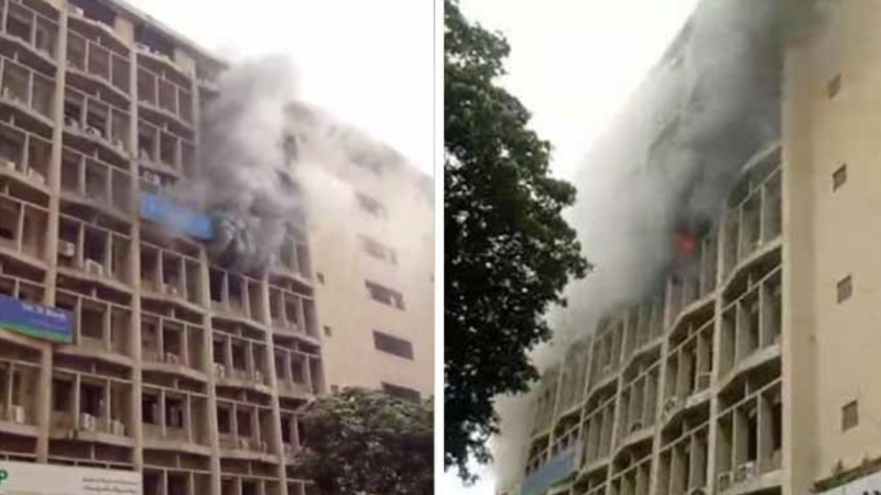 کراچی، پاکستان اسٹاک ایکسچینج میں آتشزدگی + ویڈیو