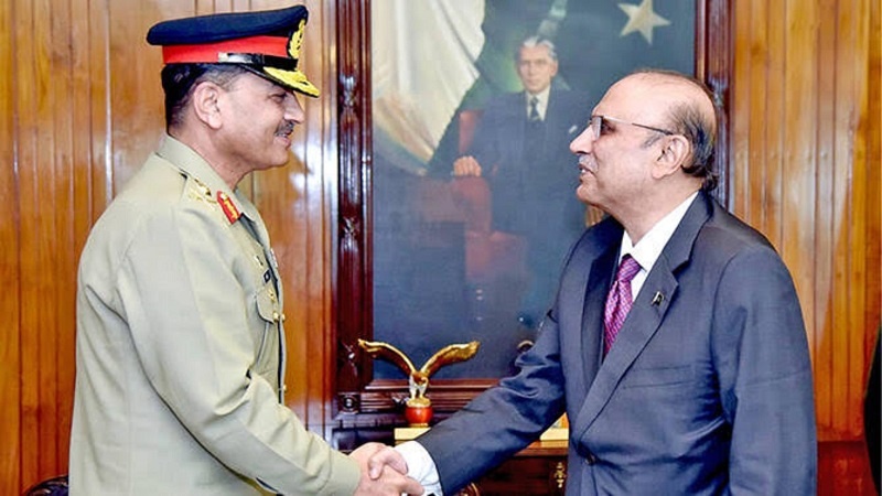 سحرنیوز/پاکستان: اسلام آباد سے پاکستانی میڈیا رپورٹ کے مطابق پاکستان کے صدر آصف علی زرداری نے چیف آف ڈیفنس فورسز کی تقرری کی سمری پر دستخط کر دیئے، لہذا اب فیلڈ مارشل عاصم منیر چیف آف آرمی اسٹاف کے ساتھ ساتھ ملک کے پہلے چیف آف ڈیفنس فورسز، سی ڈی ایف، بھی مقرر ہو گئے ہیں۔ ان دونوں عہدوں کی مدت پانچ سال ہو گی۔