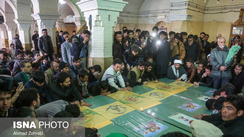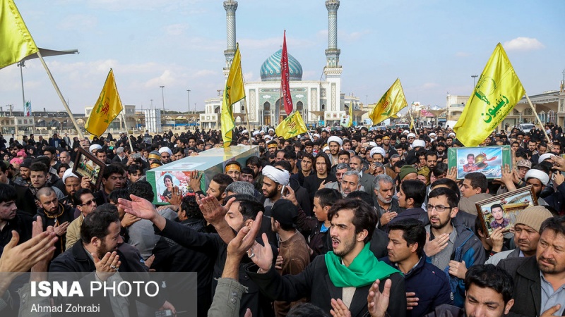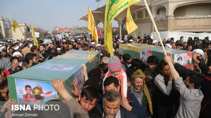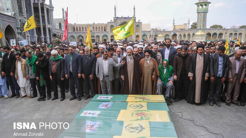 اسلامی جمہوریہ ایران کے شہر قم میں شہید ہونے والے6 مدافعین حرم کے جلوس جنازہ میں ہزاروں کی تعداد میں لوگوں کی شرکت