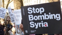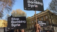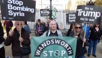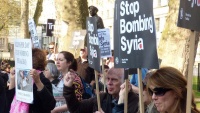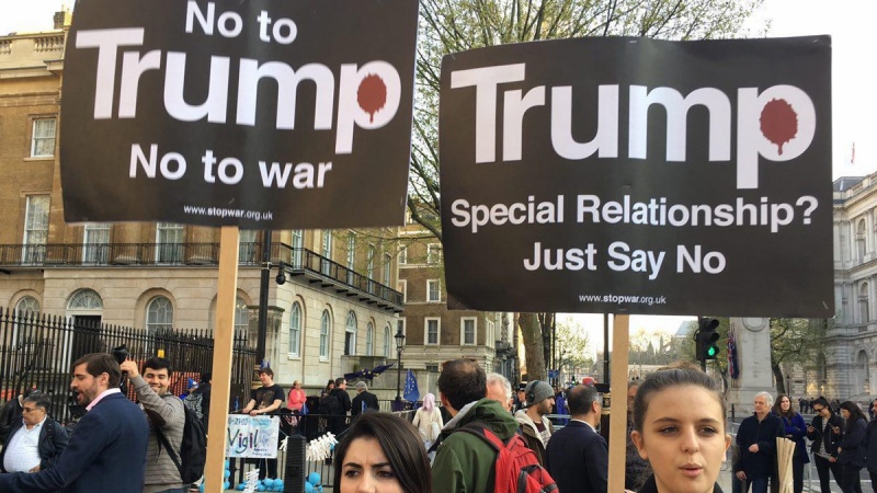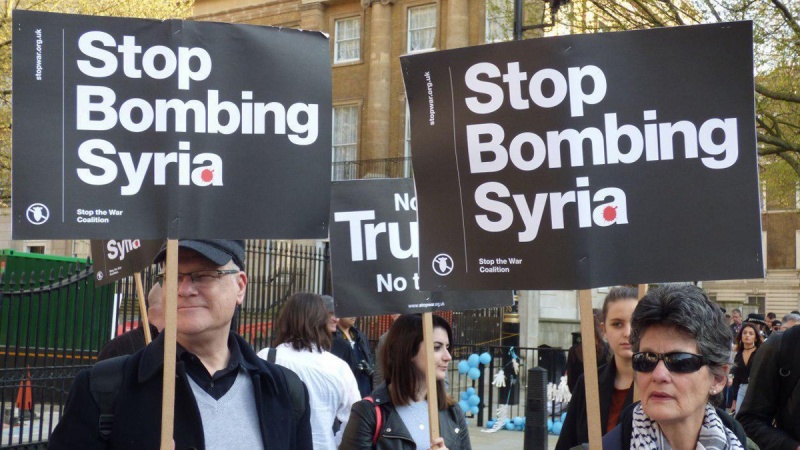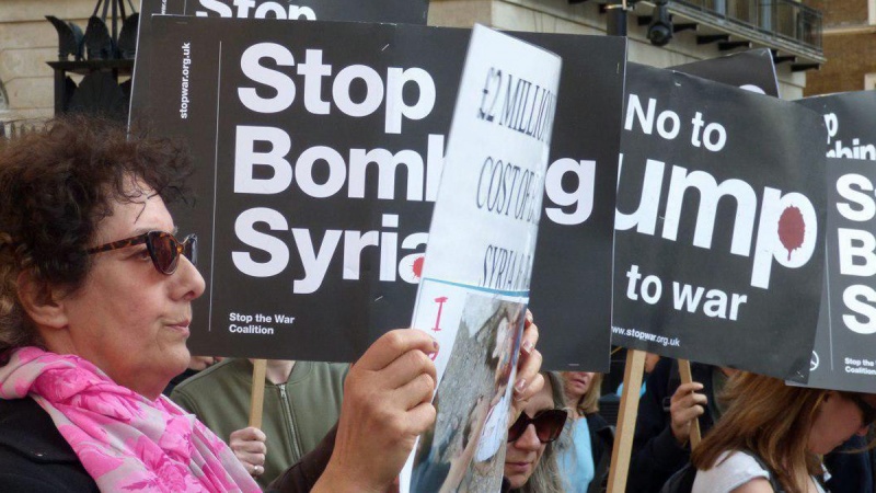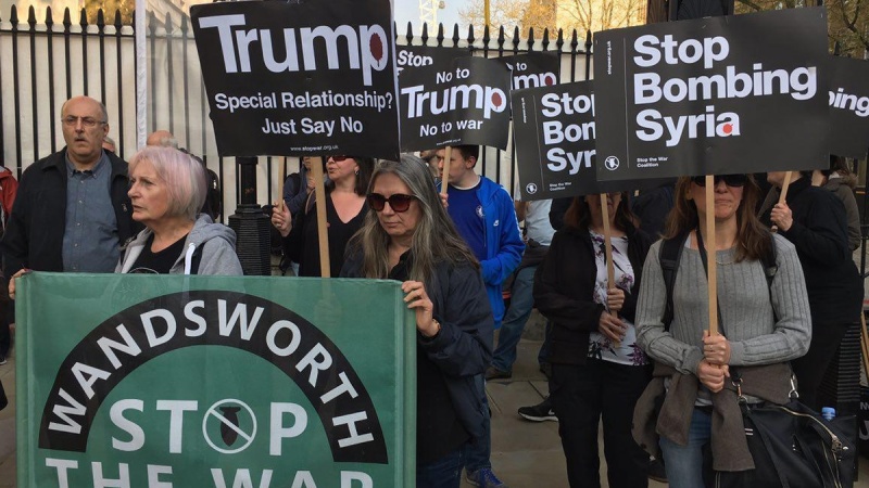 شام پر امر یکہ کے میزائلی حملے کے خلاف لندن میں احتجاجی مظاہرہ