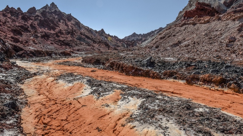 ایران کے ساحلی شہر بندرعباس سے تقریبا 8 کیلو میٹر کے فاصلے پر ایک جزیرہ ہے جوجزیرہ ھرمز کے نام سے مشہور ہے یہ بیضوی شکل میں ہے اور یہ42 کیلو میٹر مربع رقبے پر پھیلا ہوا ہے۔ یہاں سے سرخ رنگ کی مٹی نکلتی ہے جو اس علاقے کے عوام کی آمدنی کا ایک اہم ذریعہ ہے۔ اس کے علاوہ اس جزیرے کی رنگا رنگ مٹی یا مختلف رنگوں کی مٹی اور پرانے زمانے کے دیدہ زیب غاروں نے اسے چارچاند لگا دیا ہے۔