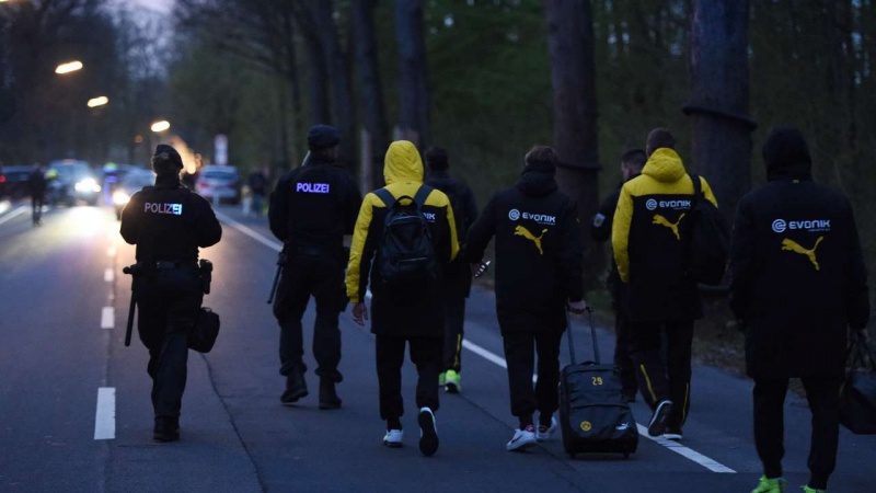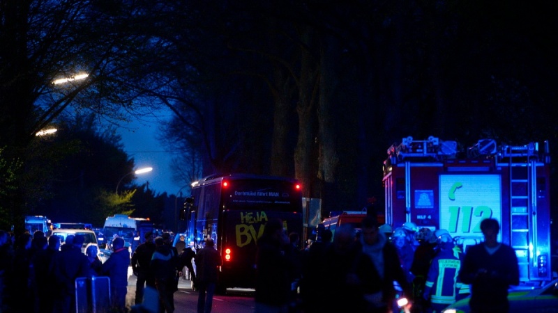 جرمنی میں منعقدہ چیمپئنز لیگ کے میچ کے لئے گراؤنڈ جانے والی بس کے قریب یکے بعد دیگرے 3 دھماکے ہوئے جس کے نتیجے میں ایک کھلاڑی شدید زخمی ہوگیا جب کہ دیگر کھلاڑی محفوظ رہے۔