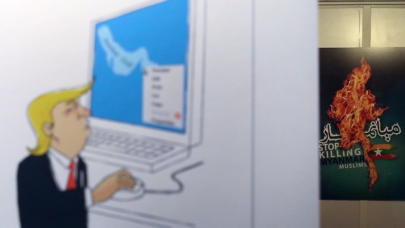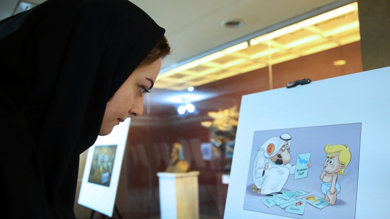 ایران کے کارٹونسٹوں نے امریکی صدر کی جانب سے خلیج فارس کو جعلی قرار دینے پر سخت رد عمل کا اظہار کرتے ہوئے پورے ملک سے 55 ایسے کارٹون بنائے جن کا افتتاح کل تہران کے فن و ہنر کے مرکزمیں ہوا۔