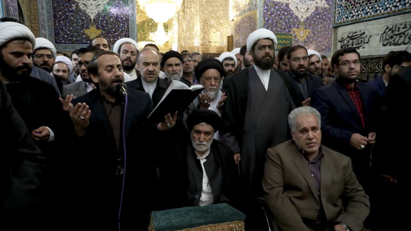 مشہد مقدس سے موصولہ خبروں کے مطابق ماہ ذی القعدہ اور امام رضا علیہ السلام کی زیارت کی مخصوصی کے ایام میں ثامن الحجج حضرت امام رضا علیہ السلام کی ضریح مطہر اور تربت پاک کی غبار روبی کی معنوی تقریب جمعرات کی صبح منعقد ہوئی اس موقع پر رہبرانقلاب اسلامی آیت اللہ العظمی سید علی خامنہ ای بھی موجود تھے- اس معنوی تقریب میں آیت اللہ العظمی ناصر مکارم شیرازی ، آیت اللہ العظمی وحید خراسانی اور آیت اللہ مصباح یزدی کے ساتھ ساتھ متعدد علما اور آستان حرم مطہر کی انتظامی کمیٹی کے عہدیدار اور شہدا کے اہل خانہ بھی شریک تھے-