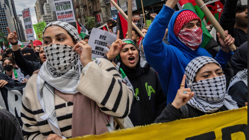 فلسطینیوں کی حمایت میں نیویارک میں بڑے پیمانے پر مظاہرے (ویڈیو)