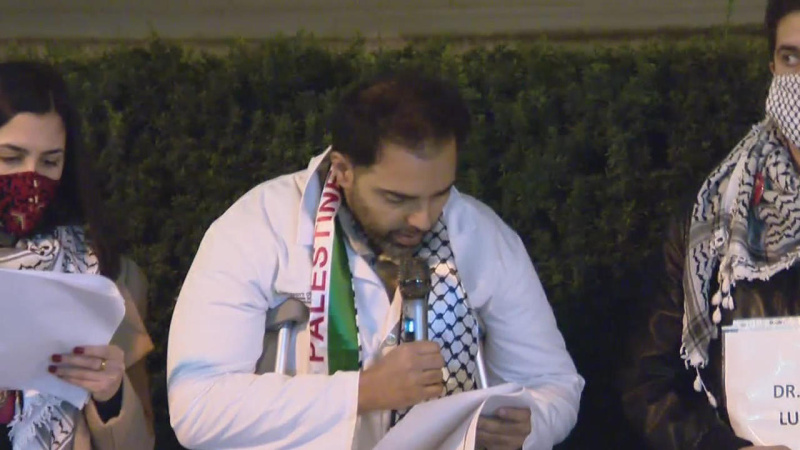 غزہ کے اسپتالوں پر حملوں کے خلاف امریکی ڈاکٹروں کا احتجاج (ویڈیو)