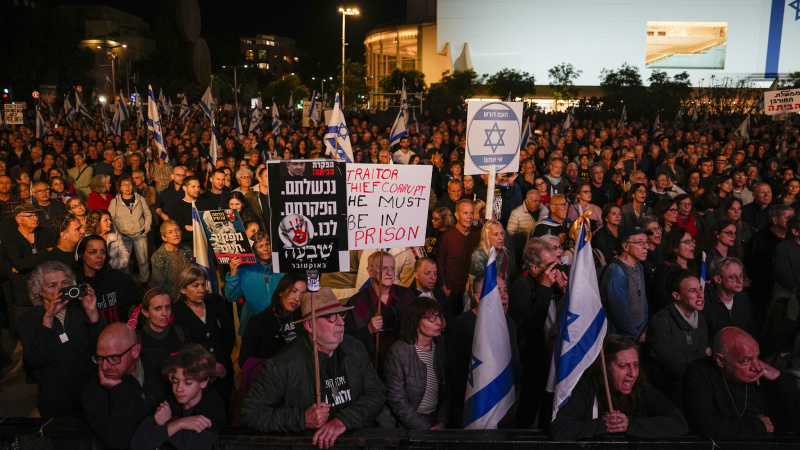 تل ابیب میں نیتن یاہو کے خلاف بڑے پیمانے پر مظاہرہ (ویڈیو)