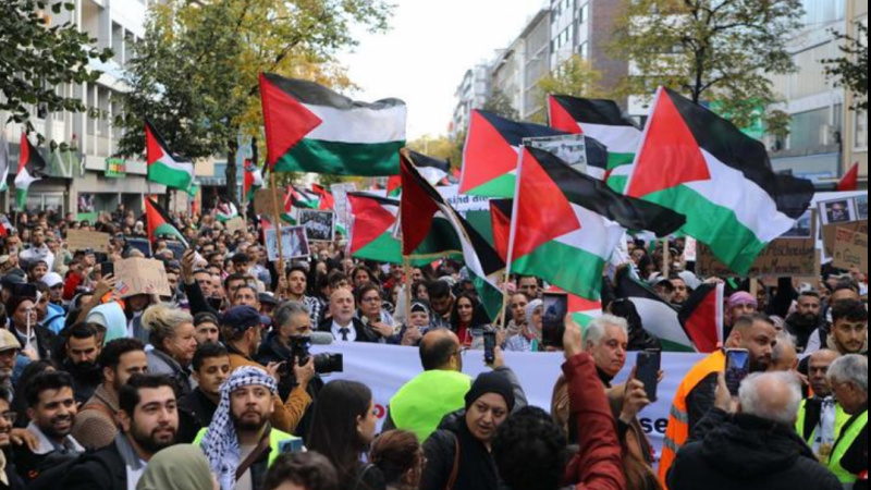 ڈنمارک کے دارالحکومت کوپن ہیگن میں فلسطین کی حمایت میں مظاہرے (ویڈیو)