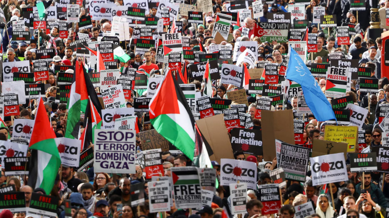 برطانوی شہر لندن اور مانچسٹر ہزاروں لوگوں نے سڑکوں پر نکل کر صہیونی حکومت کے خلاف مظاہرہ کیا اور فلسطینیوں کی نسل کشی بند کرنے کا مطالبہ کیا۔